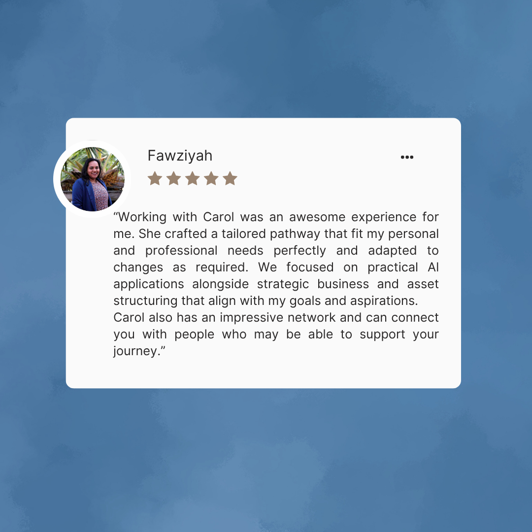 I am Carol, an Entrepreneur, visionary, writer, creator, community impact and AI leading learner specialist, dedicated to helping you create a business and life you love.